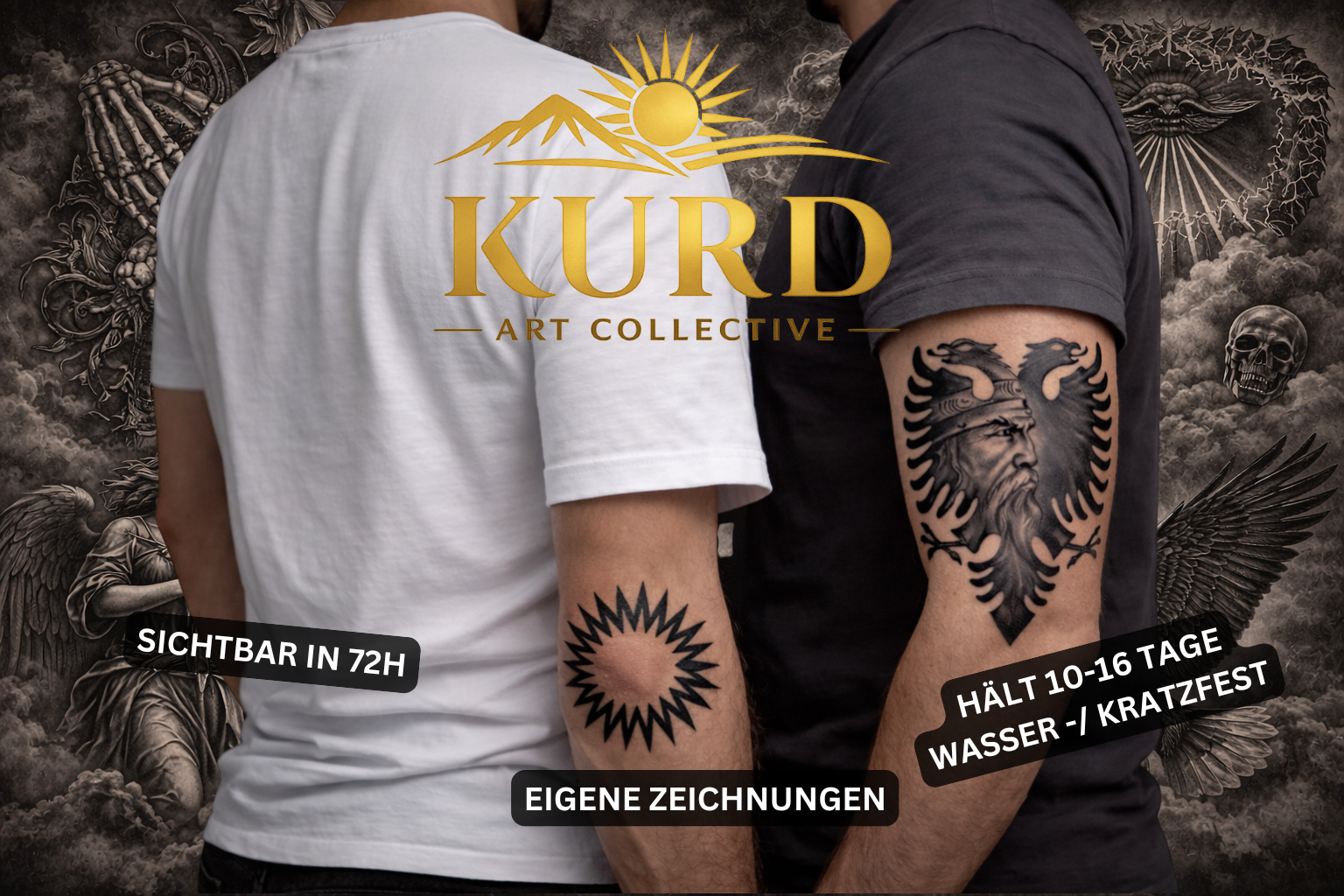 Unsere Tattoos sind so konzipiert, dass sie im Alltag, bei Kontakt mit Wasser und bei Bewegung bestehen bleiben.